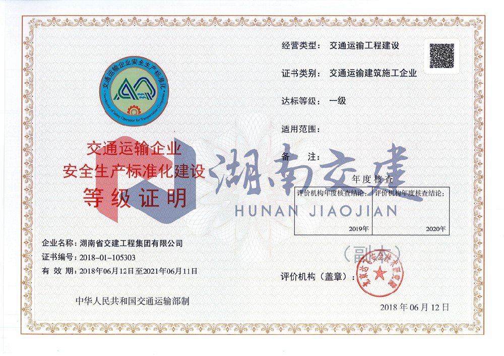 安全生产标准化一级达标证书
