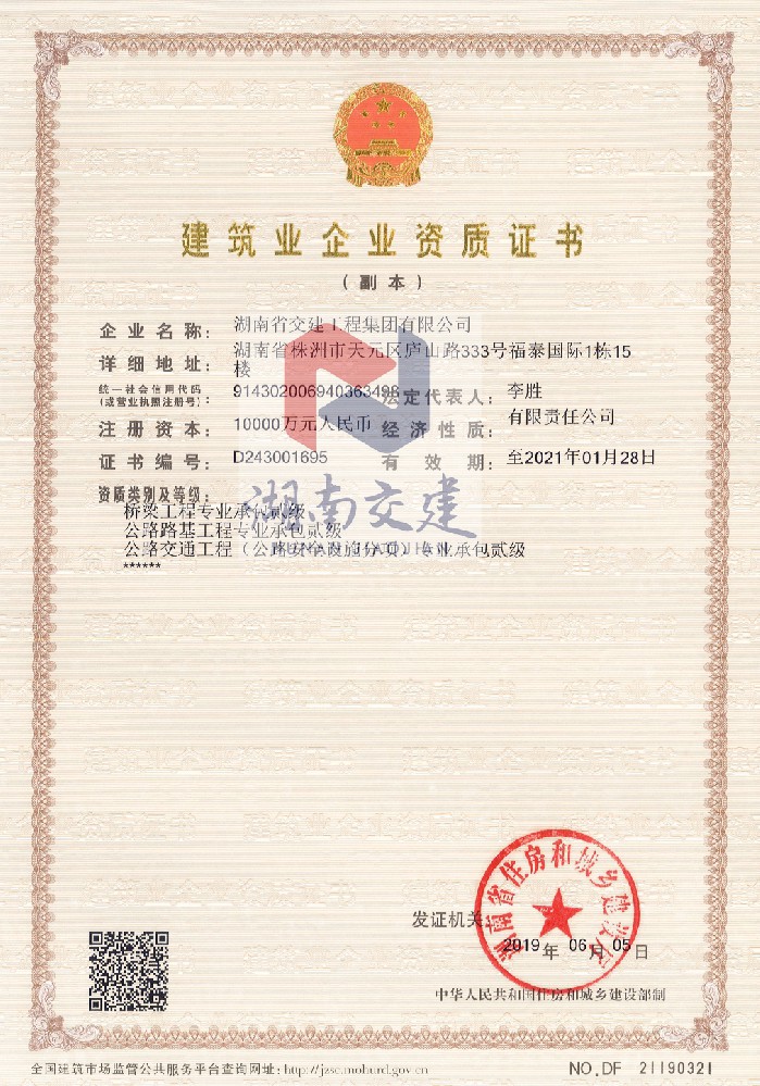 建筑业企业资质证书贰级