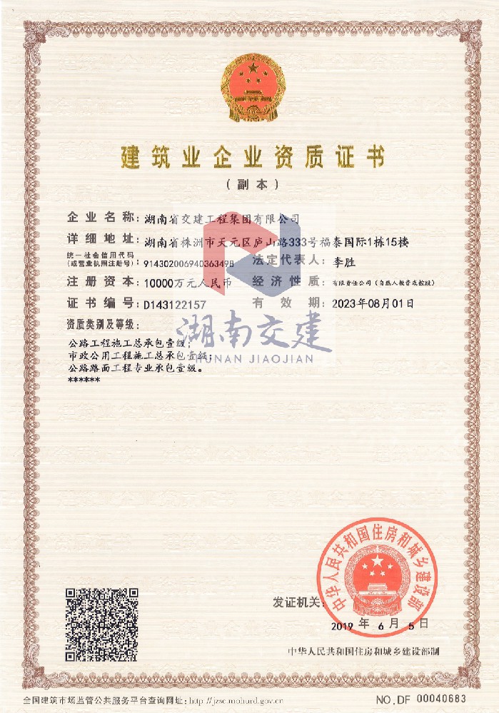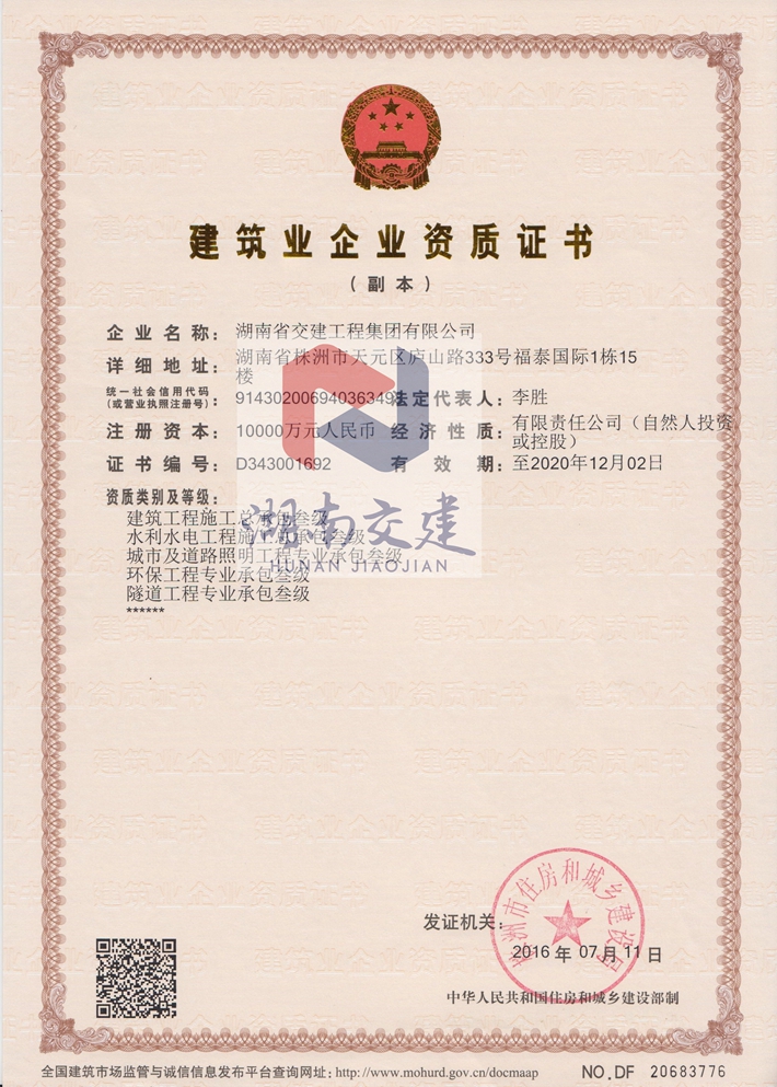 建筑业企业资质证书壹级