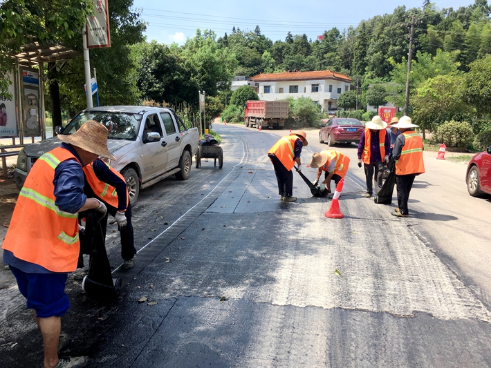 持续37摄氏度的高温烈日炙烤,加上沥青本身高达几十度的高温,对现场作业人员的身体素质和专业素质都是极大的考验。他们以高度的责任感,坚守在自己的岗位上,坚守在施工一线,成为高温天里靓丽的风景线。