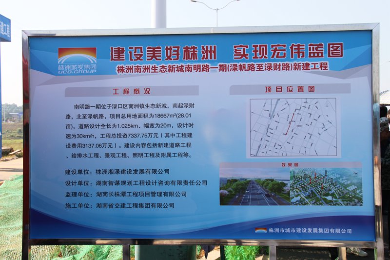 2019年9月29日上午,在喜迎中国人民共和国成立70周年之际,由我公司中标承建的株洲市南洲生态新城南明路(原规划18号道路)一期(渌帆路至渌财路)新建工程在株洲市渌口区南洲新区举行了开工典礼仪式,株洲市副市长谭可敏宣布开工,株洲市渌口区区委书记罗绍昀出席并讲话,渌口区区委副书记、区长刘克胤,株洲市城市建设发展集团有限公司党委书记、董事长谭跃飞以及建设单位相关领导等参加了开工典礼仪式。